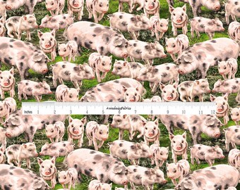Farm Fun Pig Print Fabric Quilting Sewing Dress Making Etsy